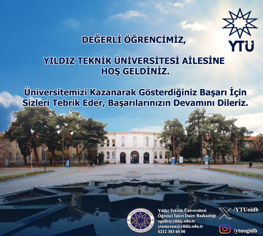 2025 YKS ile Üniversitemize kayıt hakkı kazanan öğrencilerin (Gemi Makineleri İşletme Mühendisliği bölümü hariç) e-Devlet üzerinden kayıtları 01-03 Eylül 2025 tarihlerinde, şahsen Üniversitemize gelerek kayıt yaptırmayı tercih eden öğrencilerin kayıtları ise kazandıkları bölümün bağlı olduğu fakültelerde 01-05 Eylül 2025 tarihlerinde yapılacaktır.